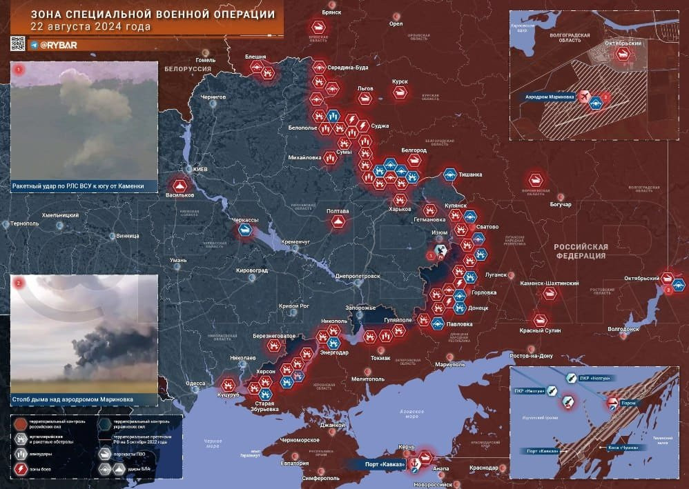 Новая карта боевых действий в зоне СВО на Украине от 23.08.2024