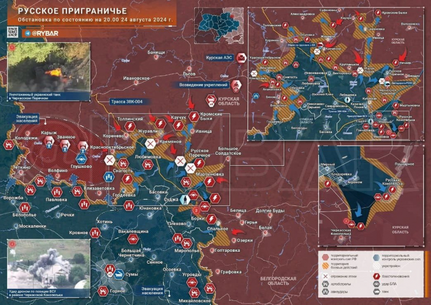 Новая карта боевых действий в зоне СВО на Украине от 25.08.2024