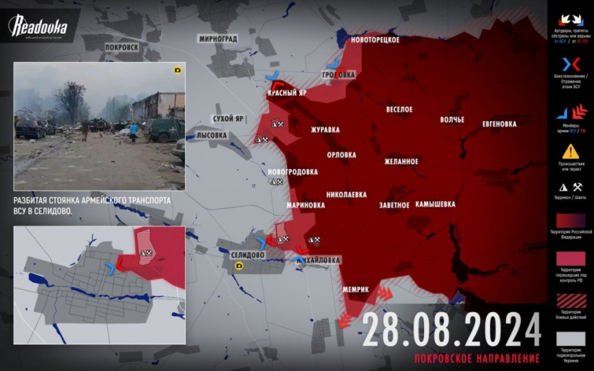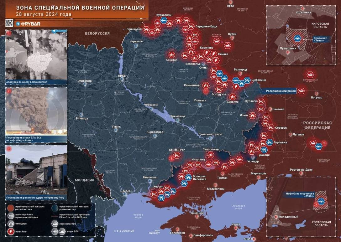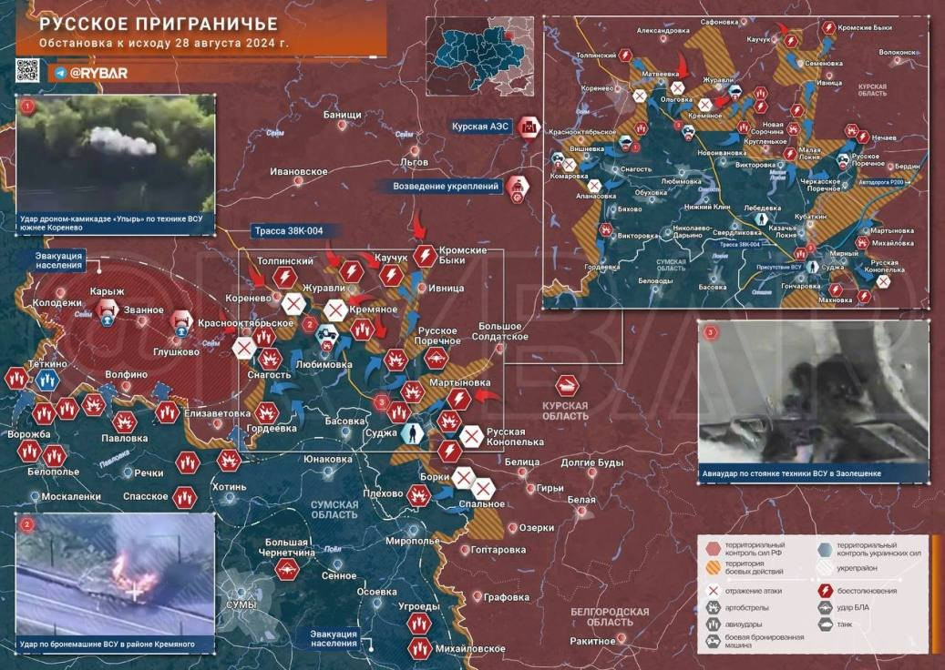 Новая карта боевых действий в зоне СВО на Украине от 29.08.2024
