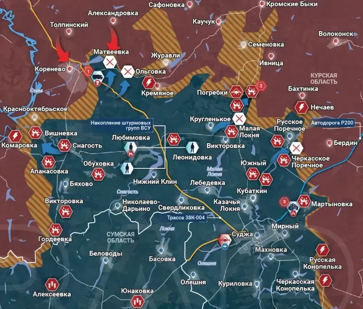 В Кореневском районе противник не оставляет попыток прорваться в Коренево, но пока что ему это сделать не удаётся. По врагу наносятся удары артиллерией, FPV-дронами и ПТРК. В районе Матвеевки и Ольговки отражено несколько атак ВСУ. Помимо этого, уже традиционно враг пытался атаковать в районе Комаровки, чтобы прорваться в Глушковский район. Противник понёс потери и отступил.
