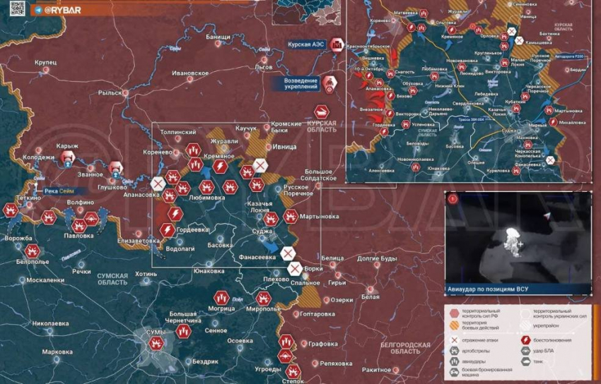 Обстановка в Суджанском районе значительных изменений не претерпела. Украинские формирования предприняли несколько атак в районе Черкасской Конопельки, Камышевки, Марьевки и Борок, однако не добились успехов.