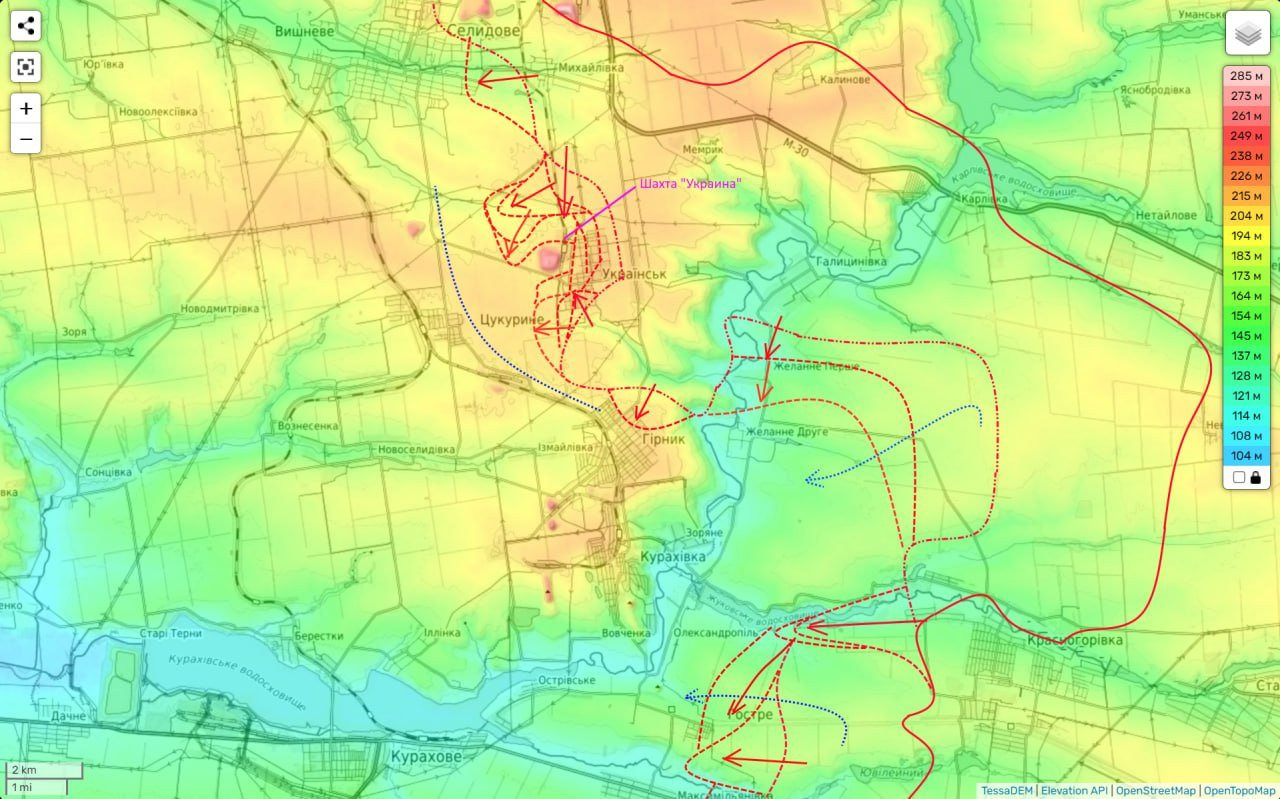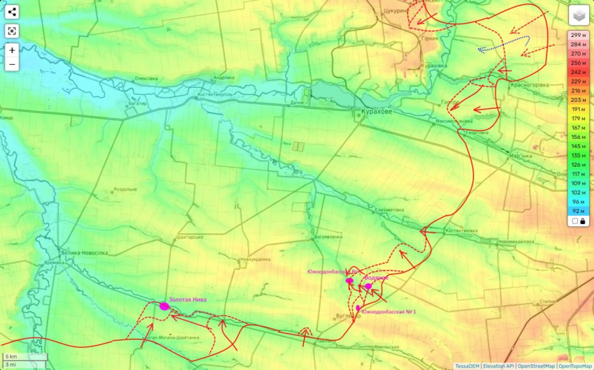 Нами был взят под контроль район самой шахты и поля северо-восточнее. Также есть небольшие продвижения в районе шахты Южнодонбасская №1 по направлению к Угледару.
