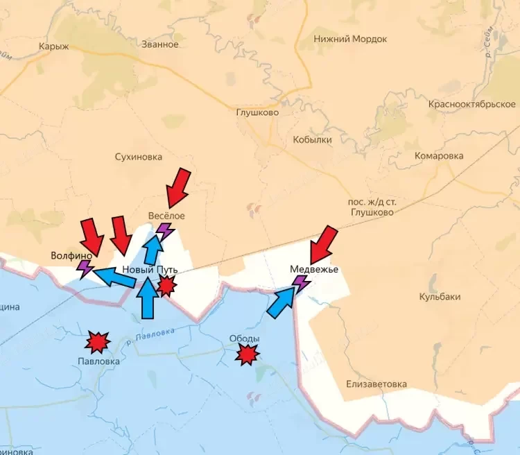 В публикации уточняется, что украинские военные предприняли попытку атаки в окрестностях села Волфино и поселка Новый Путь.
