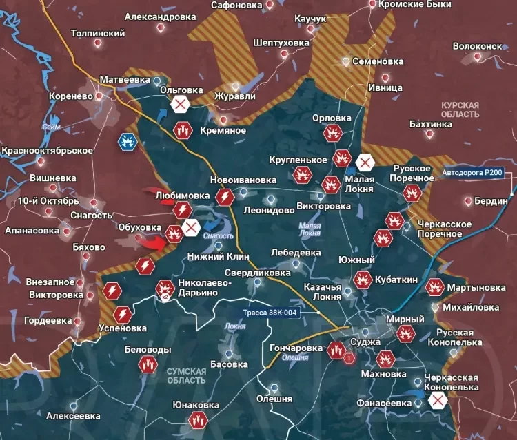 В Кореневском и Суджанском районах встречные бои идут в районе Орловки. Врага на этом участке ещё много, и у него даже есть возможности наступать, несмотря на давление ВС РФ с фланга.