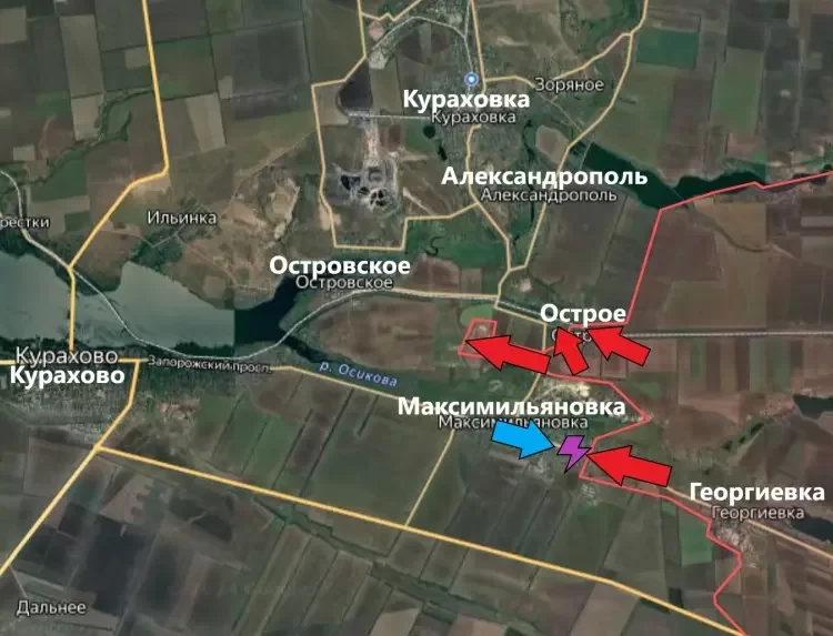 На Кураховском направлении подразделения Армии России зачистили от врага колонию западнее Острого. Помимо этого, сообщается, что под контроль ВС РФ перешёл и сам населенный пункт Острое. Видимо, без прикрытия со стороны колонии враг не смог оказывать достойного сопротивления и был смят нашими штурмовиками.