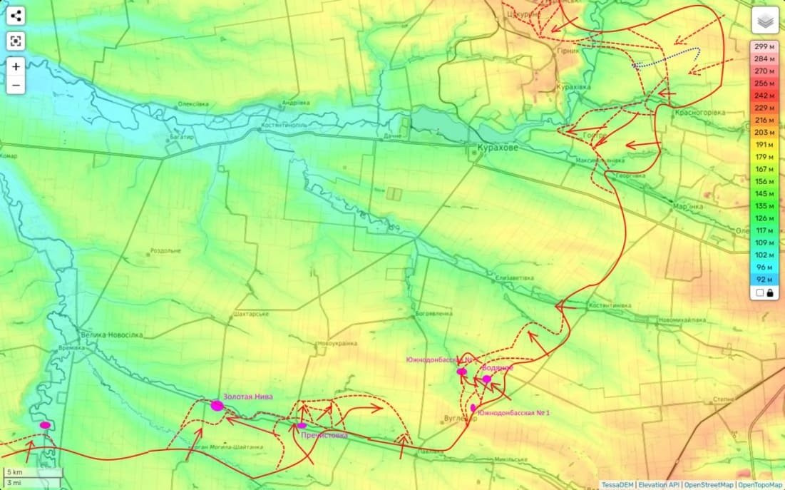 «Таким образом самый удобный рубеж обороны противника здесь, на котором и строилась оборона Угледара - прорван», - отмечает журналист в своем Telegram-канале.