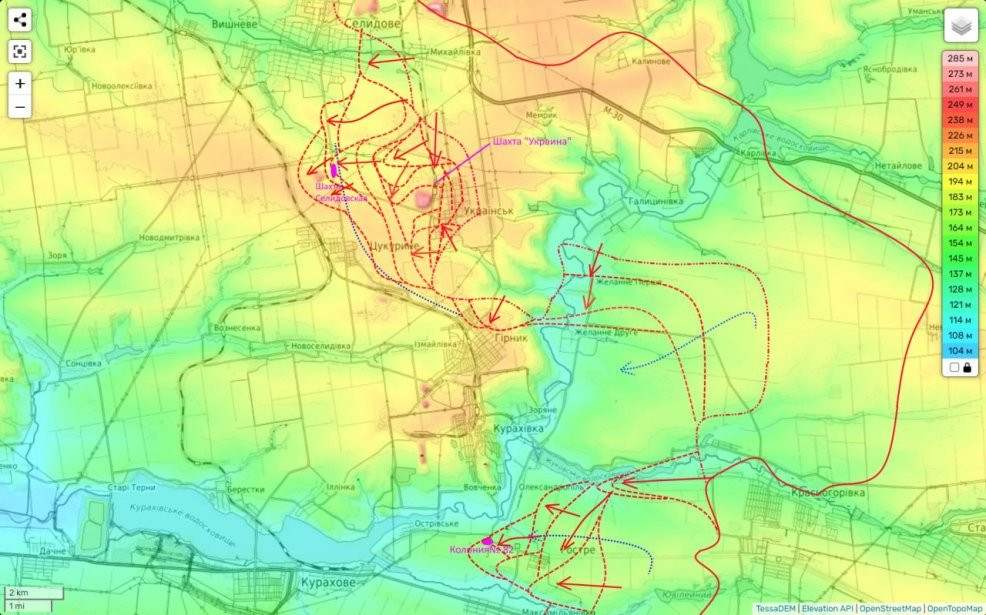 Вчера наши штурмовики сумели выбить противника и занять террикон шахты «Селидовская» (преобладающую здесь высоту), а наши передовые части при этом вышли на окраины Цукуриного.