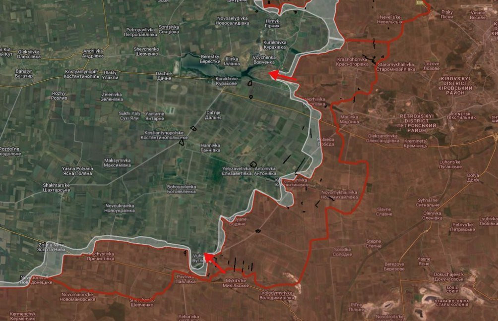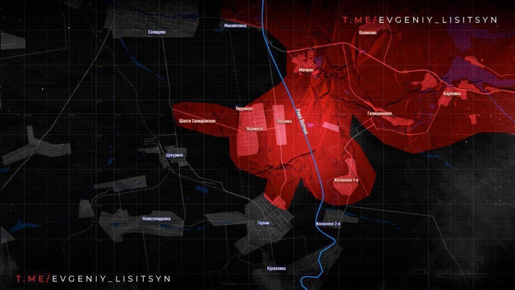 На Покровском направлении идут бои в восточной части Николаевки. Наши войска развивают успех и продолжают окружать Селидово. По последним данным, ВС РФ перерезали ж/д ветку севернее Цукурино и уже штурмуют его восточные окраины, сообщает военкор Евгений Лисицын в своем Telegram-канале.