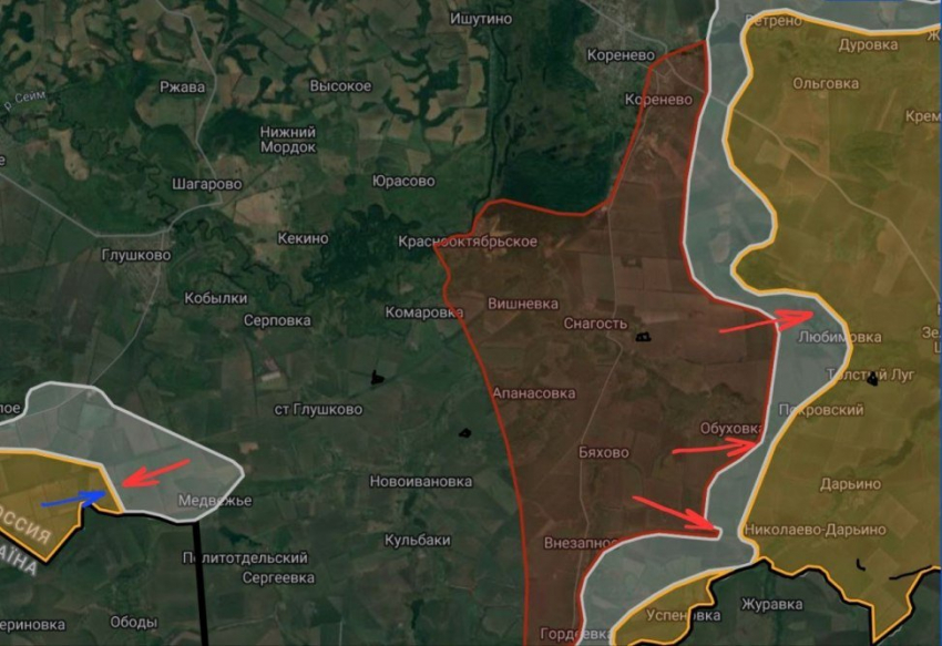 В Курской области в Глушковском районе продолжаются боестолкновения в районе Весёлое и Медвежье. На Кореневском участке ВС РФ расширили контроль территории в районе Обуховки и Николаево-Дарьино. отмечаются встречные бои в районе Любимовки. На Суджанском участке локальные боестолкновения отмечены по линии Мартыновка-Черкасская Конопелька.