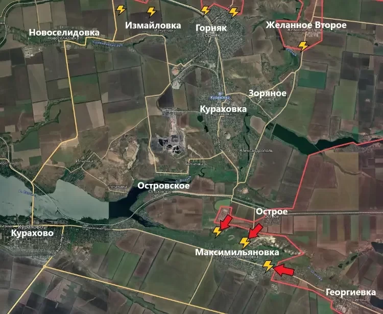 На Кураховском направлении основные боевые действия разворачиваются восточнее Курахово. Подразделения ВС РФ атакуют позиции ВСУ в Максимильяновке с севера и с востока. Есть небольшое продвижение в селе, однако о его освобождении говорить пока что преждевременно.
