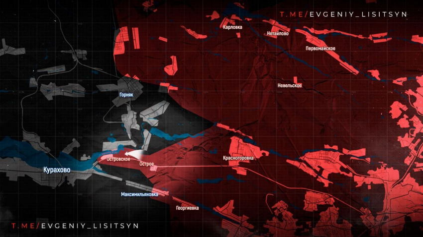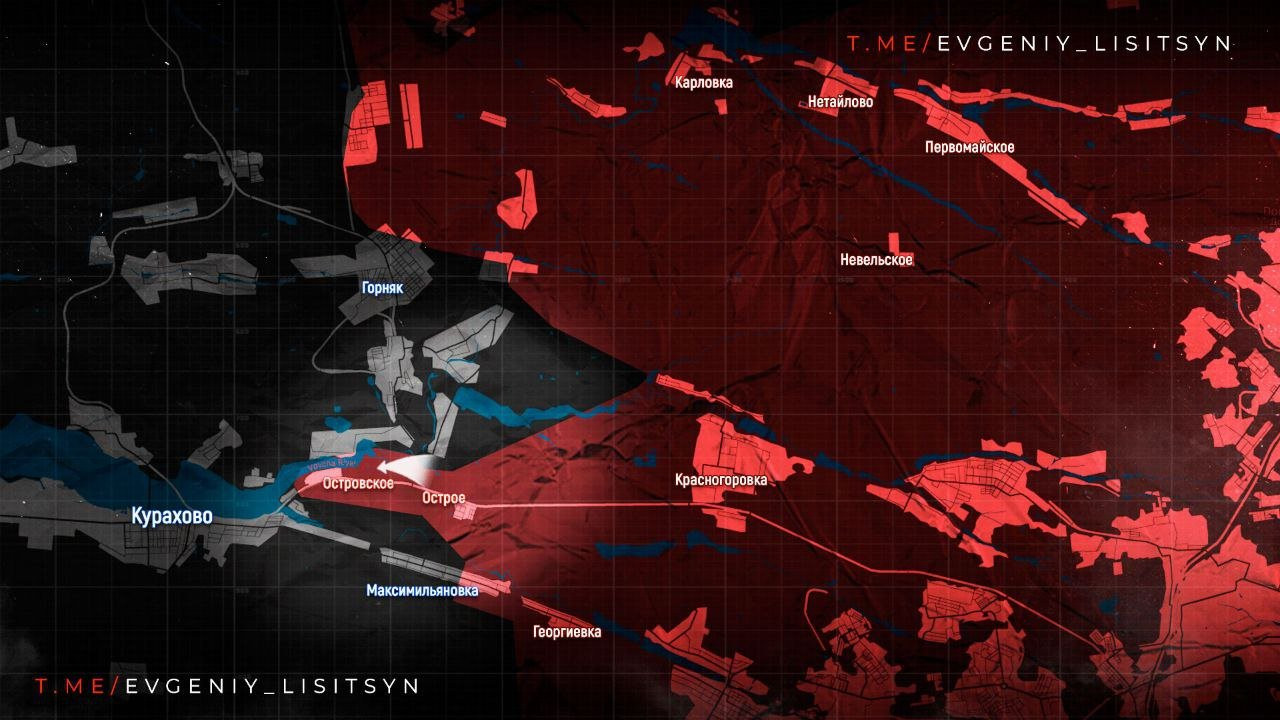 На Кураховском направлении наши парни закрепились в центре Максимильяновки. Также наши ВС РФ  зашли на восточную окраине села Островское, которое вплотную прилегает с востока к Курахово, сообщает в Telegram-канале военкор Евгений Лисицын.