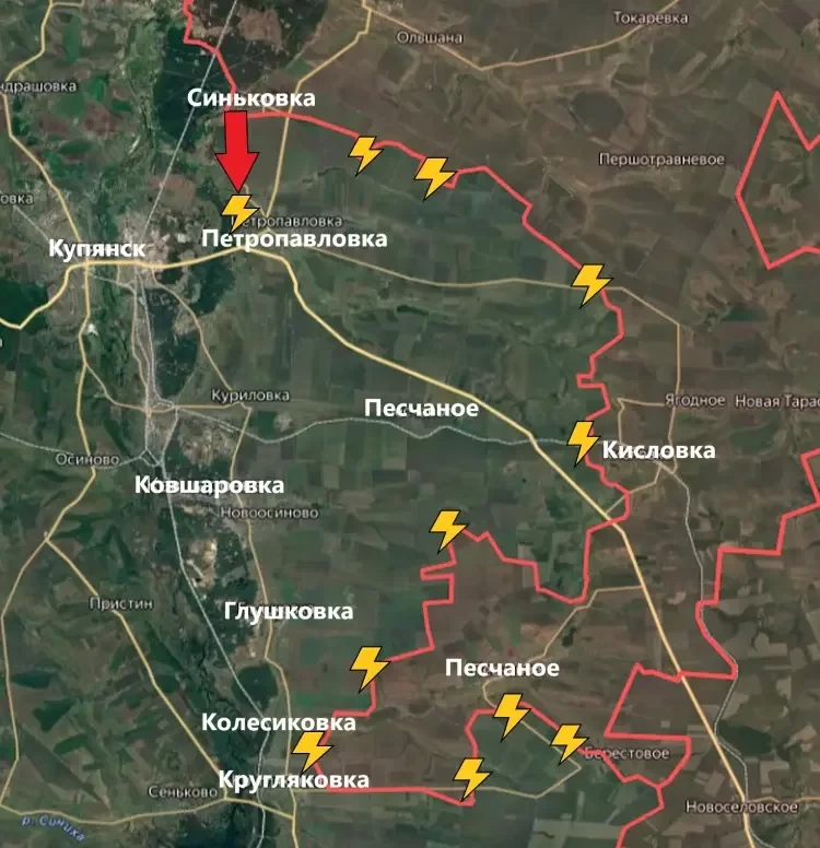 На Купянском направлении подразделения ВС РФ продвинулись южнее Синьковки и достигли северо-западных окраин Петропавловки. Общее продвижение составило три километра. К сожалению, в ходе одного из боёв несколько наших бойцов попало в украинский плен. Западнее Кисловки продолжаются встречные бои. ЛБС на этом участке неизменна уже довольно продолжительное время. В районе Песчаного Армия России пытается расширить зону контроля. Идут бои на севере, западе и юге. Существенных продвижений за последние сутки не зафиксировано.