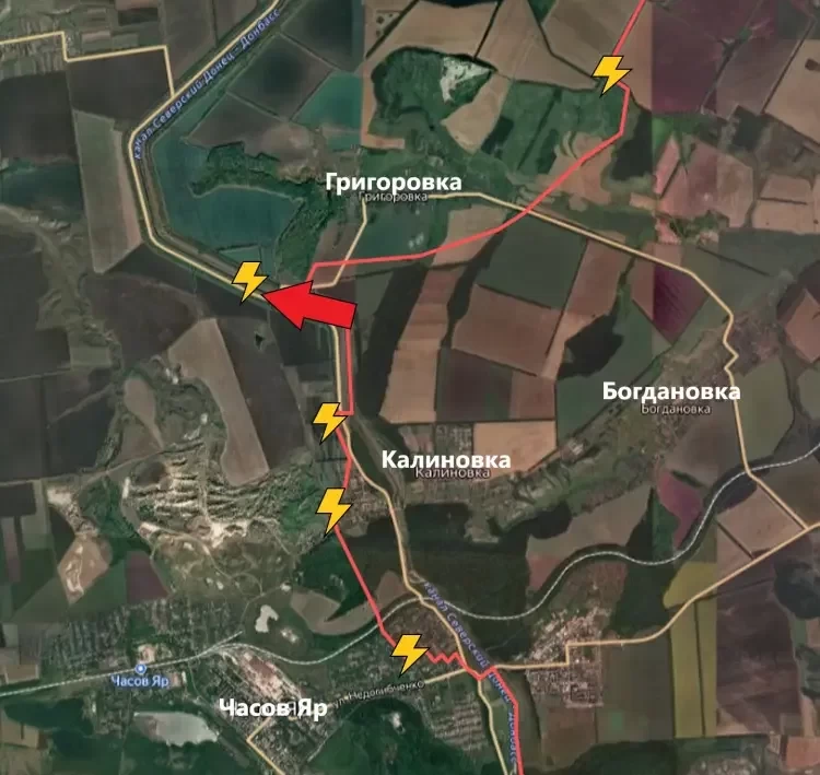На Константиновском направлении подразделения ВС РФ продвинулись вдоль канала юго-западнее Григоровки. Предположительно, наши бойцы попытаются взять населённый пункт полуокружение или в мешок. Тут многое зависит от того, как выстроена оборона ВСУ вокруг села, информирует PulsePen.