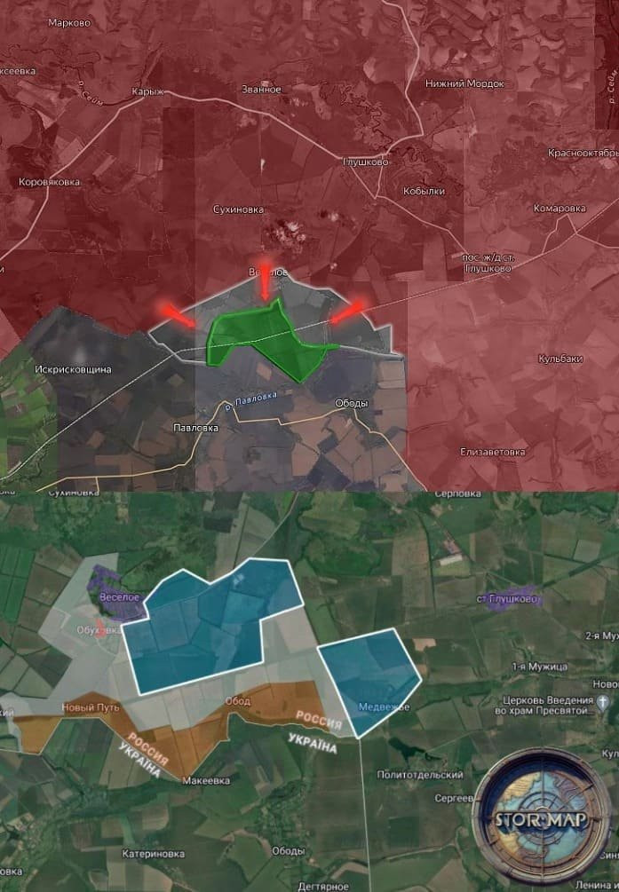В Глушковском районе ВС РФ ведут бои на северных окраинах Нового Пути. Украинские формирования удерживают позиции южнее железнодорожного полотна и накапливают силы для проведения контратаки на участке.