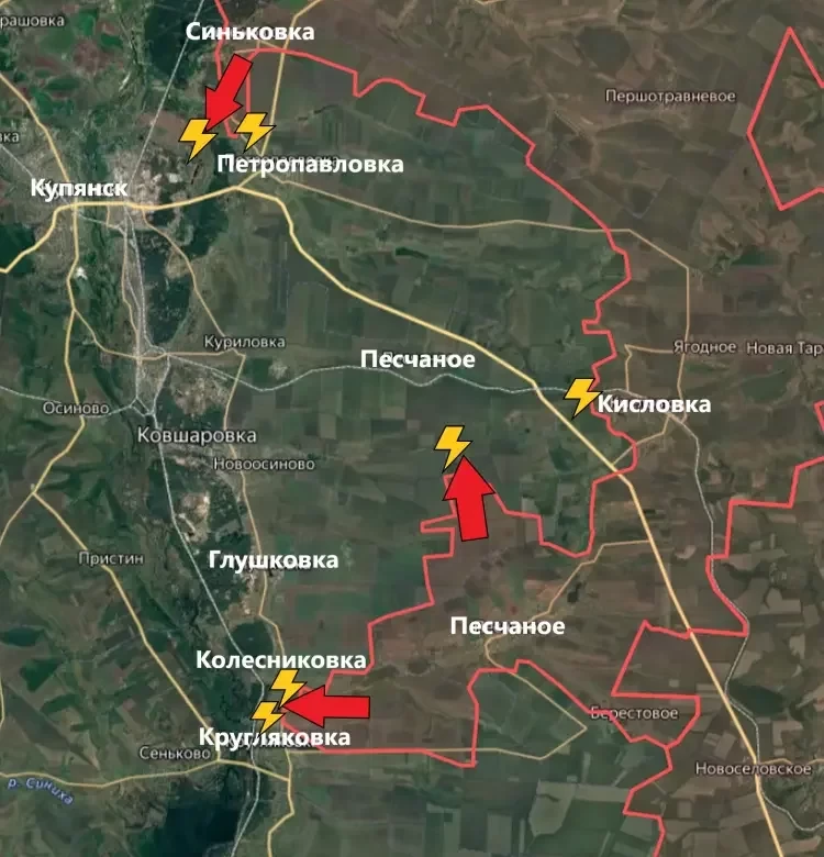 Помимо этого, подразделения ВС РФ атакуют из района Кисловки и Песчаного в сторону Песчаного (северного).
