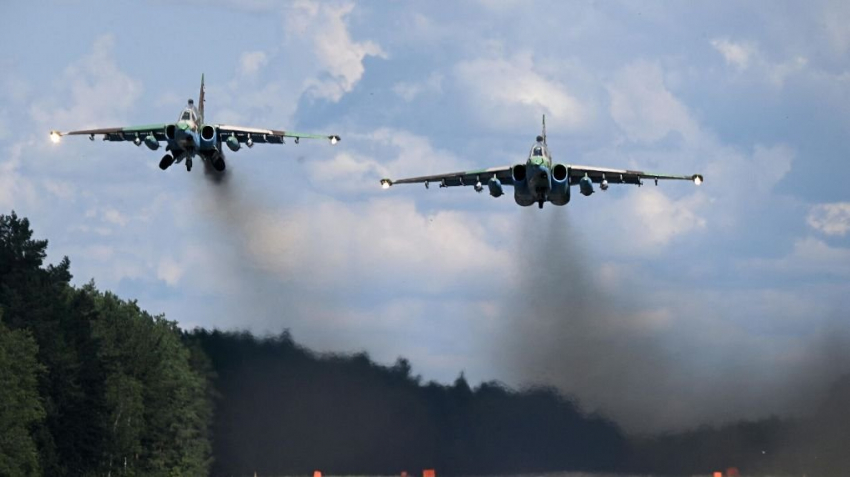 Экипажи штурмовых истребителей Су-25 Военно-космических сил РФ уничтожили украинских боевиков и бронетехнику в приграничье Курской области, сообщает пресс-служба Минобороны России.