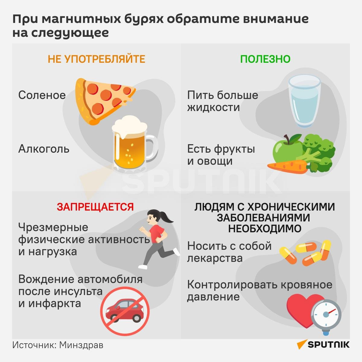 Также к космической непогоде могут подготовиться и люди, страдающие сердечно-сосудистыми заболеваниями. Им доктор посоветовала контролировать артериальное давление и держать рядом все необходимые лекарства и воду. Если во время магнитных бурь ухудшается самочувствие, стоит проконсультироваться с лечащим врачом о дозировке препаратов. Кроме того, важно избегать стрессов, ограничить алкоголь, курение и вредную еду.