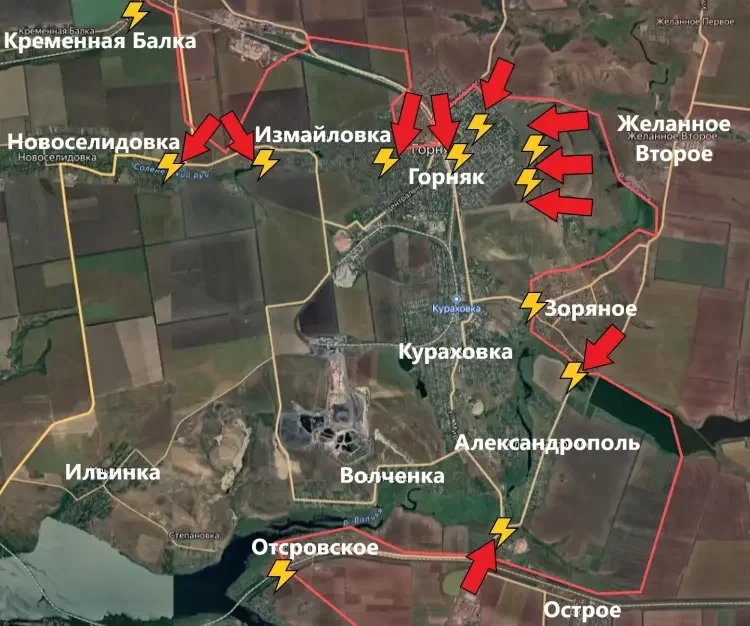 ВС РФ ведут штурмовые действия западнее Цукурино и в северной части Горняка.