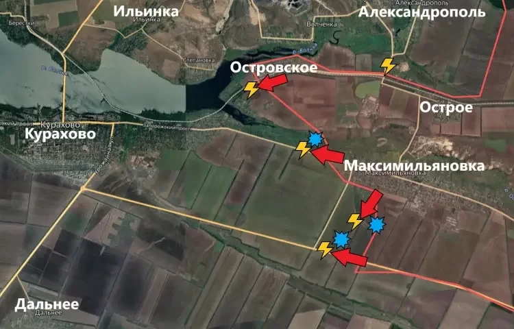 На Южном участке наши бойцы продвигаются от недавно взятой под контроль Максимильяновки в сторону Курахово. С другой стороны, враг здесь хорошо подготовился и наносит удары FPV-дронами по нашей продвигающейся вперёд технике. И это не единственное препятствие на пути наших бойцов.