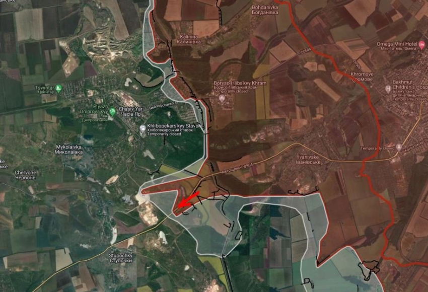 Российские войска расширили контроль территории вдоль автодороги Т0504 (Артёмовск-Константиновка), продвинулись в западном направлении, информирует Telegram-канал "БелВПО".