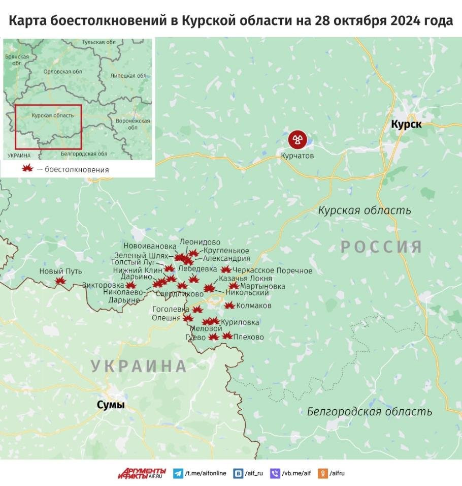 Свежая карта боевых действий в Курской области на 28 октября 2024 года