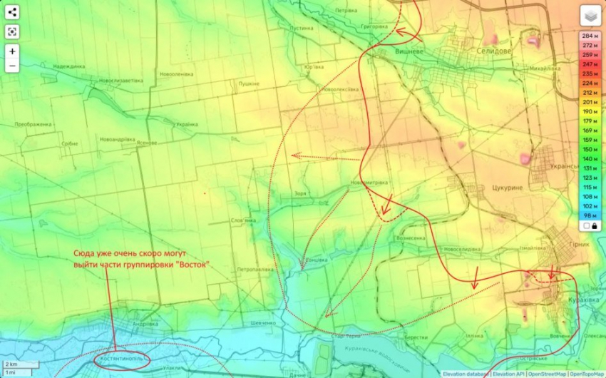 И если при этом наши части группировки "Центр" совершат бросок к реке с севера, а им для этого надо пройти 10-12 км (об этом в следующем материале), то вся Кураховская группировка противника попадет в окружение, отмечает Юрий Подоляка в своем Telegram-канале.