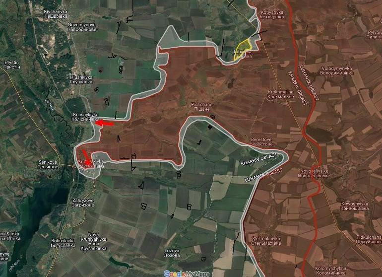 На Купянско-Лиманском направлении российские войска расширили контроль территории юго-западнее Синьковки. ВС РФ имеют тактические успехи на восточной окраине Колесниковки севернее р. Песчаная. В районе Кругляковки российские войска давят в южном направлении.