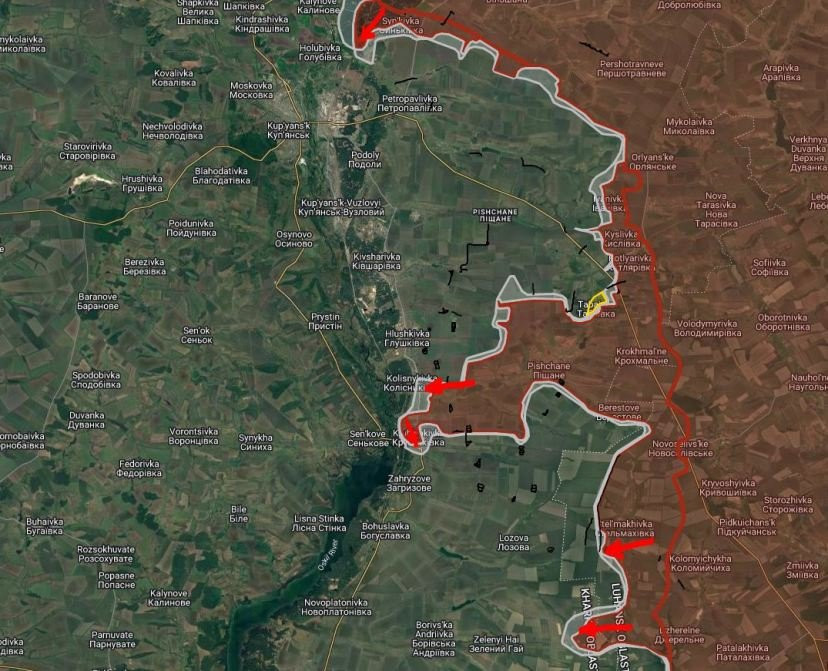 На Купянско-Лиманском направлении российские войска расширили контроль территории северо-западнее Петропавловки, продвинулись в южном направлении на глубину до 400 м. Под контроль ВС РФ перешла Кругляковка. Продолжаются встречные бои районе Колесниковки, Стельмаховки и Вишнёвого.