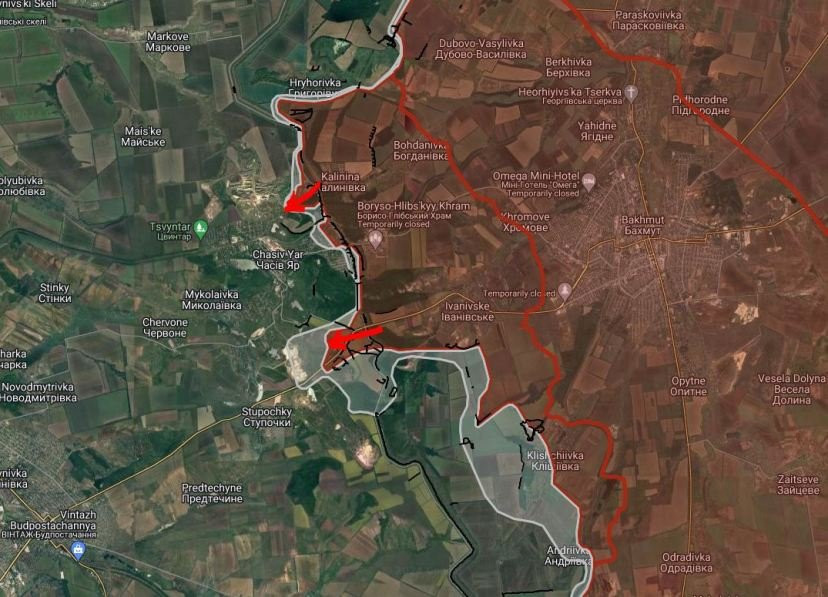 На ЧасовЯрском направлении ВС РФ ведут штурмовые действия в в мкр «Октябрьский», южнее Часов Яра давят в направлении Ступочки.