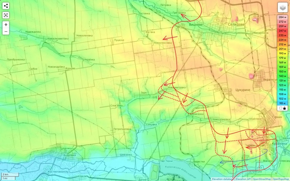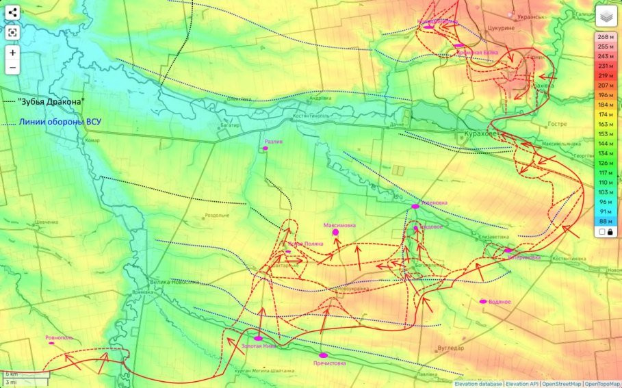 Таким образом ВСУ пока никак не удается здесь стабилизировать свой фронт. И для Кураховской группировки угроза окружения нарастает уже буквально каждый день.