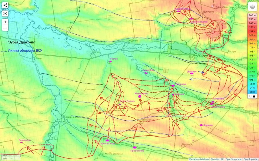 Как только ВС РФ освободят Курахово, они получат возможность дальнейшего развертывания наступательных действий уже в сторону Великой Новоселки и Богатыря, продвигаясь на запад.