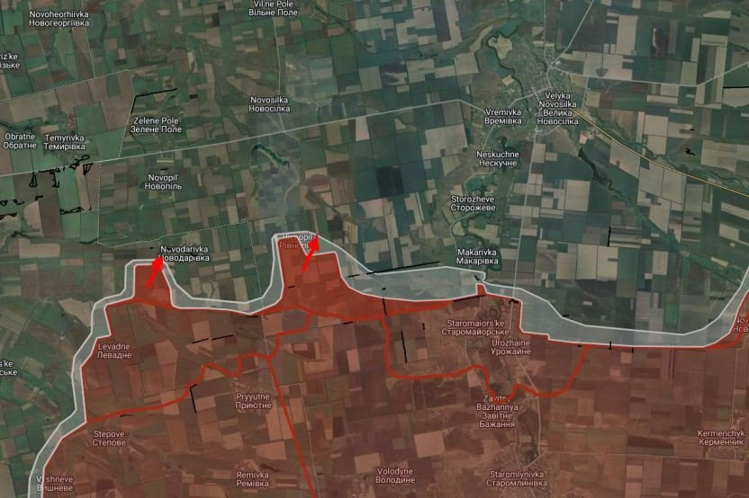 На Времевском направлении российские войска расширили контроль территории в районе Ровнополя и южнее Макаровки, продвинулись на участке шириной до 9.2 км на глубину до 2.83 км.
