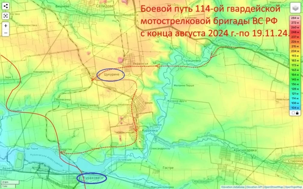 На Кураховском направлении противник пытается удержать свои позиции севернее реки Вольчей, чтобы не дать российским войскам выйти к населённому пункту Старые Терны и тем самым не допустить закрытия «мышеловки». На данный момент им удается сдерживать ситуацию в районе Солнцевки. Однако противостоять бойцам 114-й гвардейской мотострелковой бригады ВС РФ становится всё сложнее. Эти войска, словно несокрушимый каток, продолжают освобождать донбасскую землю, разбивая при этом элитные подразделения противника, включая «азовцев» (запрещенная в РФ террористическая организация) из 3-й штурмовой бригады и боевиков из 47-й.