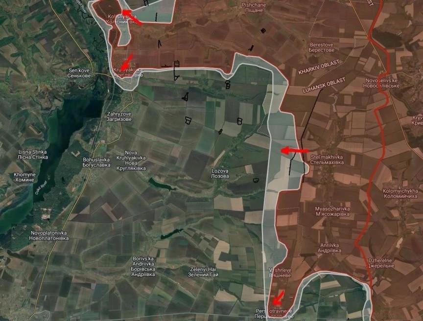 На Купянско-Лиманском направлении продолжаются боестолкновения на южной окраине Глушковки, в Колесниковке, в Кругляковке, западнее Стельмаховки и в районе Першотравневого, обстановка существенных изменений не претерпела.
