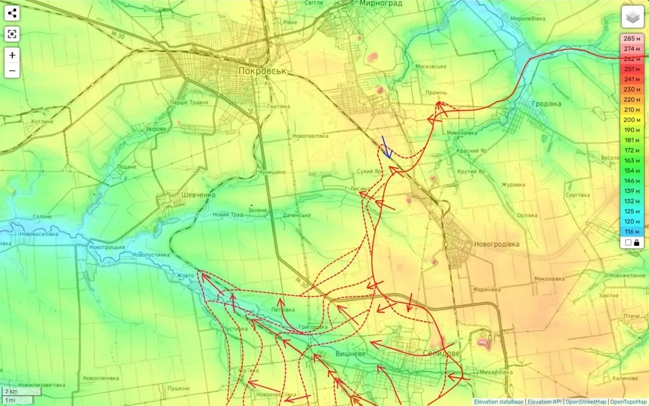 По его информации российские штурмовые группы также наступают по северному берегу Кураховского водохранилища, где вошли в село Берестки, а также заняли дамбы, по которым ранее проходили автомобильная и ж/д переправы.