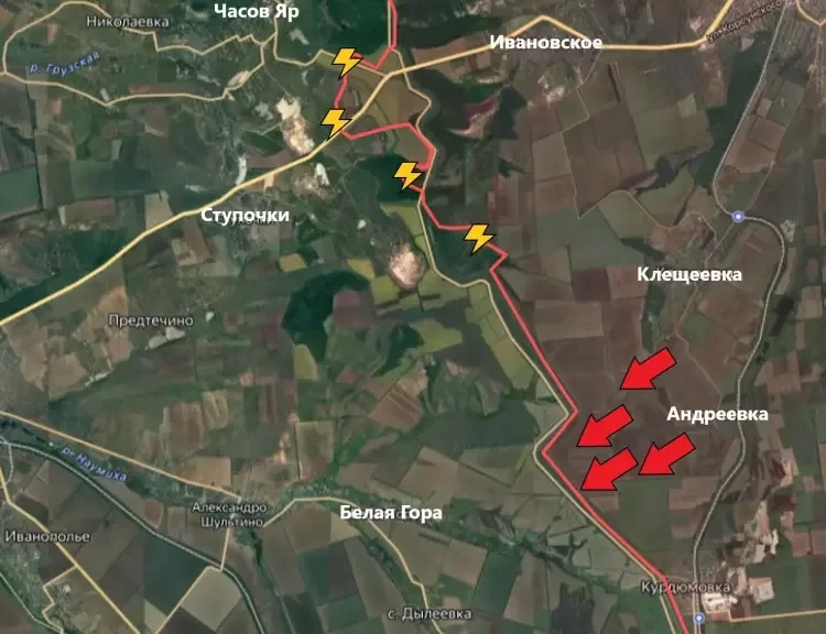 Сообщается, что нашим бойцам удалось закрыть «карман» западнее Андреевки. Существенное продвижение ВС РФ к каналу «Северский Донец - Донбасс» в направлении Белой Горы.