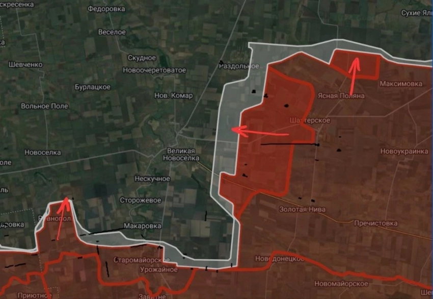На Времевском направлении российские войска давят в направлении Новоселки с опорой Ровнополье с целью перерезать автодорогу Новоселка-Великая Новоселка.