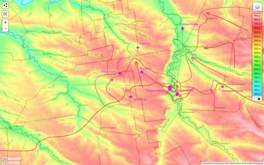 Активные бои за Великую Новосёлку по итогу вчерашнего дня уже начались. Наши штурмовики зашли на фермы в юно-восточной части села и сейчас идут их зачистка. Также мы вышли к восточным окраинам этого н.п., а также «обтекаем» его с северо-востока.