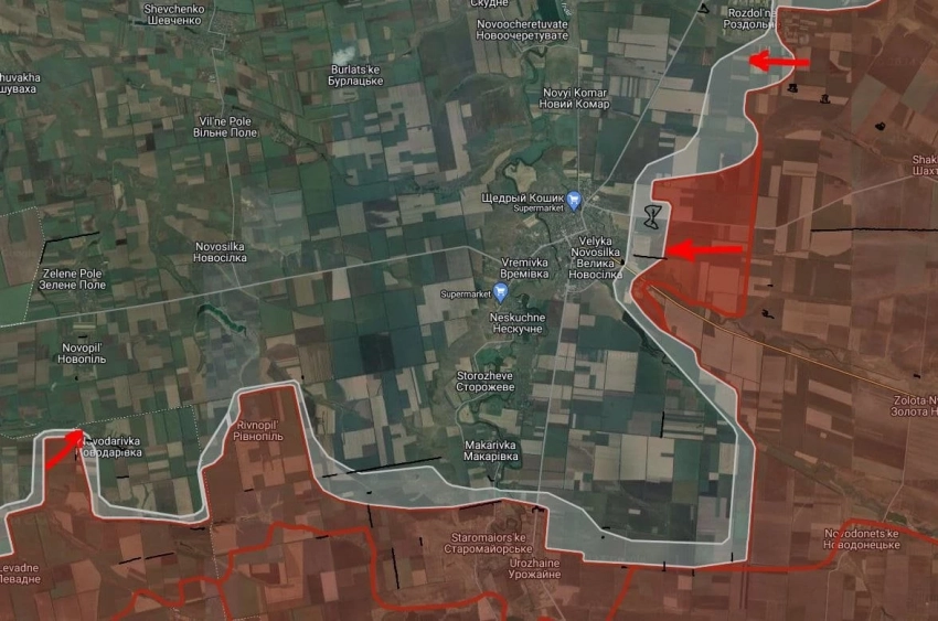 Восточнее Великой Новосёлки российские войска закрепились на участке шириной до 4.25 км на глубину до 3.28 км.