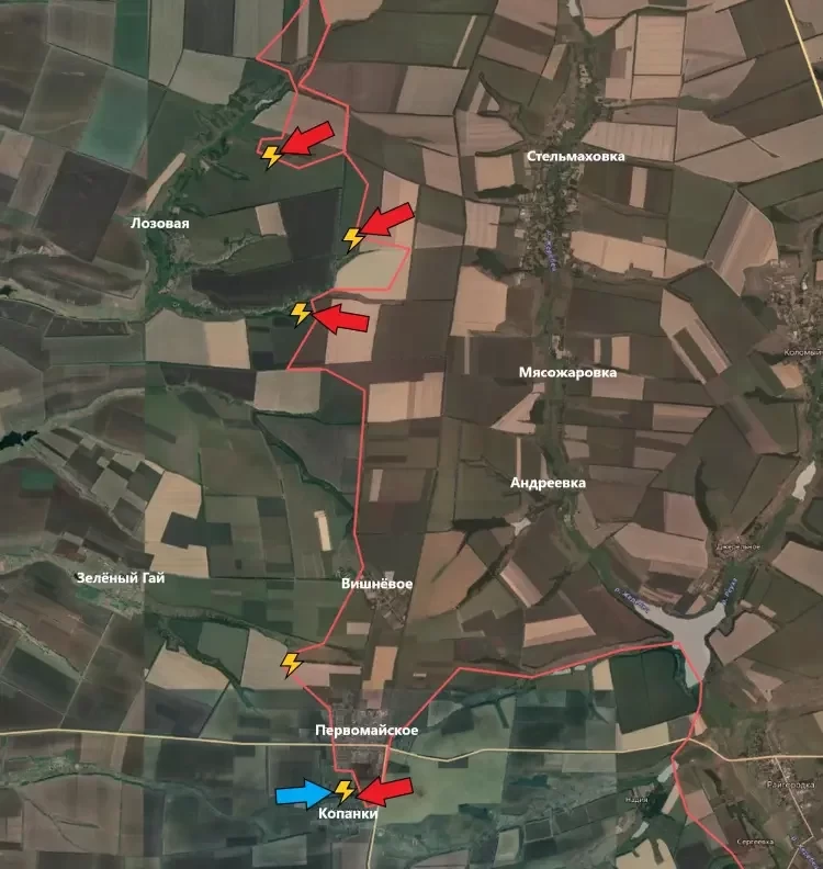На днях наши бойцы зашли в Копанки, небольшой населённый пункт южнее Первомайского (Першотравневого) и закрепились там. Однако