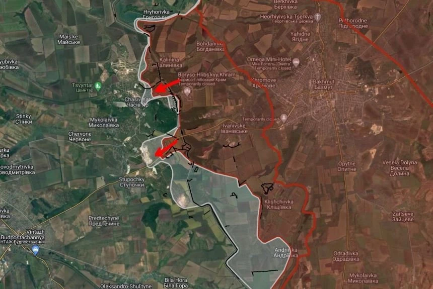 На ЧасовЯрском продолжаются штурмовые действия в районе «Огнеупорного комбината», ВС РФ продвинулись в районе стадиона, сообщает Telegram-канал "БелВПО".