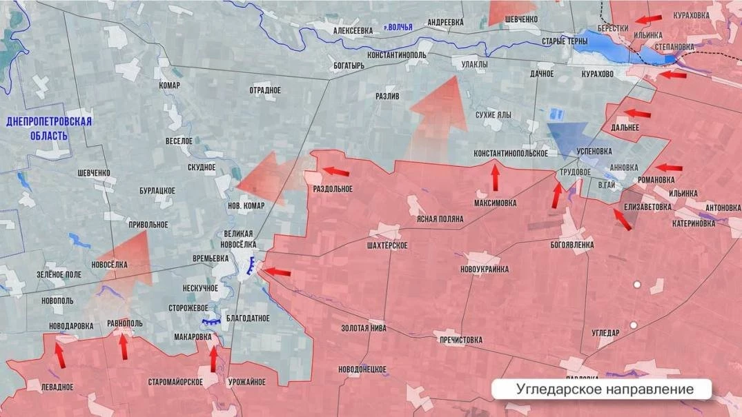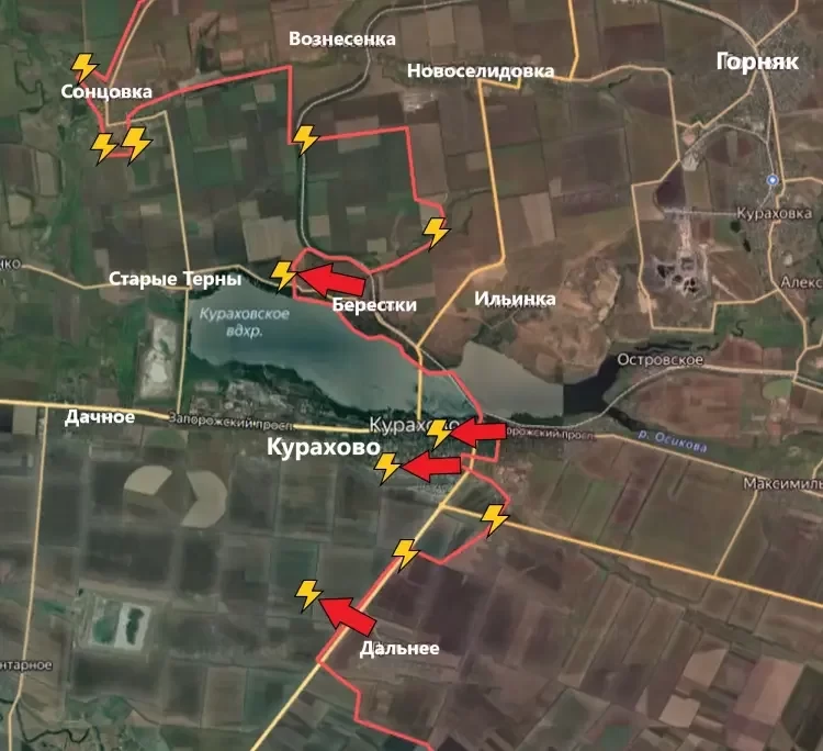 На Кураховском направлении аармия России зачистила дачи северо-западнее Берестков и продолжает продвижение в направлении Старых Терн.