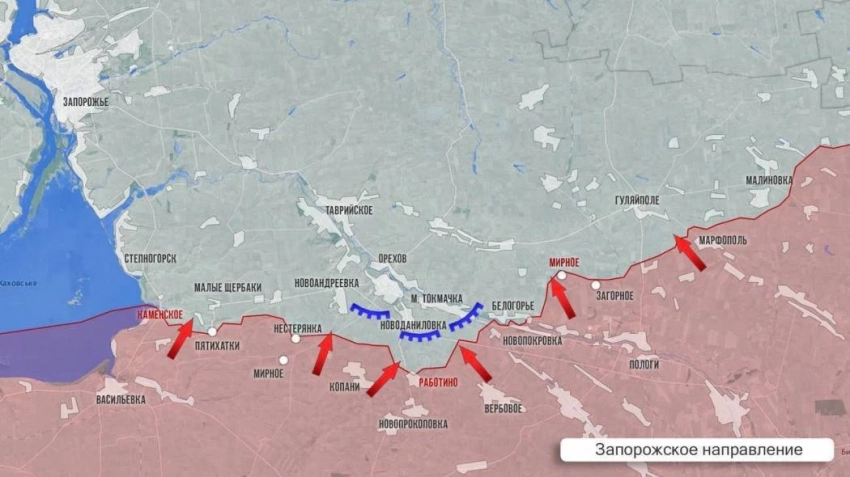 На Запорожском участке в районе Малой Токмачки идут встречные бои. ВСУ методично обстреливают Энергодар – за сутки было два обстрела из артиллерии и 6 атак дронами. Из-за повреждения ЛЭП на несколько часов практически весь регион оставался без света.
