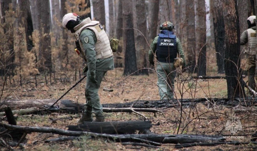 Сводный пиротехнический отряд МЧС России продолжает свою важную работу по очистке мирных территорий Курской области от взрывоопасных предметов.