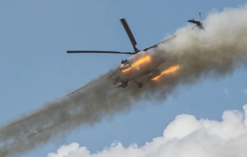 Экипаж вертолёта действовал в составе смешанной тактической группы и применил авиационную управляемую ракету для поражения целей. После удара военные выполнили противоракетное маневрирование на предельно малой высоте, отстреливая тепловые ловушки для предотвращения попадания ракет переносных зенитных ракетных комплексов противника.