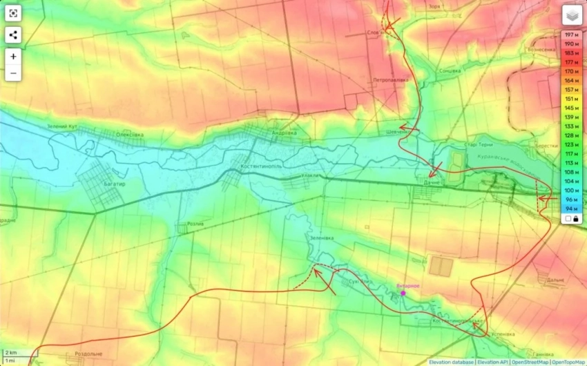 И одновременно с этим наши части южнее реки Волчья, со стороны села Сухие Ялы начали движение в сторону н.п. Зелёное. Смысл маневра очевиден.