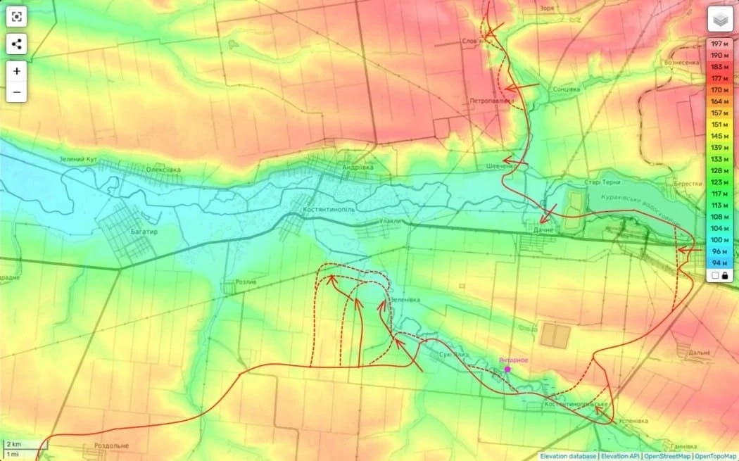 "Правда, с тактической точки зрения нам его полностью под контроль брать и не надо. Лучше взять под контроль населённый пункт Западное и холмы вокруг. Вот тогда уже будет смысл брать всё Двуречное до реки и будет сформирован вполне себе устойчивый плацдарм, с которого можно будет двигаться дальше", - уточнил Подоляка.