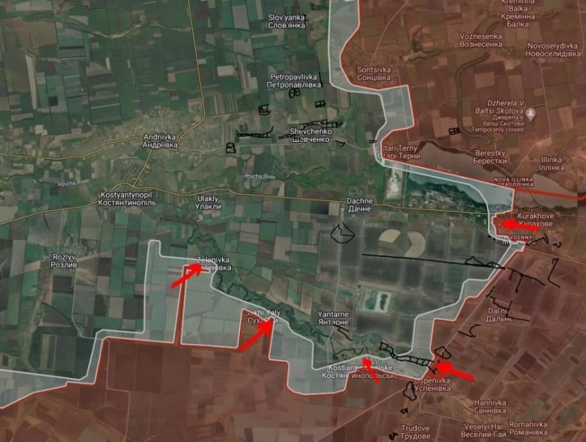 Российские войска расширили контроль территории в Константинопольском и Сухие Ялы, давят северо-западнее Зеленовки, передаёт Telegram-канал "БелВПО".