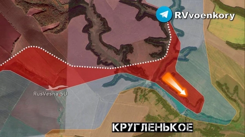 Наши войска продолжают штурмовать деревню Кругленькое, бои идут на северной окраине. Одновременно наши пехотные подразделения зачищают соседние с Кругленьким лесополосы и урочища, продвигаясь вдоль балки Глубокий Яр.