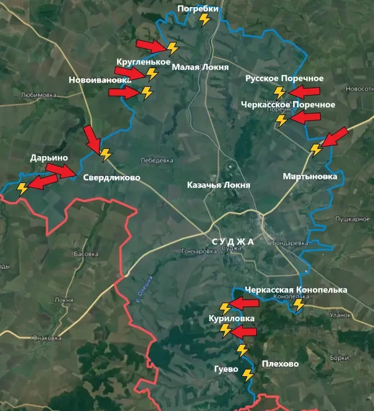 Сообщается, что подразделения ВС РФ форсировали реку Суджа на юго-восточном участке и зашли в Куриловку. Часть населённого пункта перешла под контроль Армии России. Если получится создать там устойчивый плацдарм (за реками Псёл и Суджа), то ситуация в районе самого города Суджа радикально ухудшится для ВСУ.